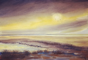 2023Technische opdracht in de cursus Aquareltechnieken. Geen ander medium is zo geschikt om licht te kunnen weergeven.